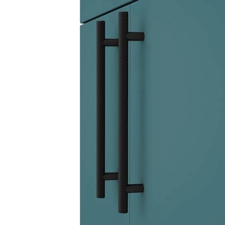 The contemporary matt green Arezzo Industrial style furniture range, with it’s simple design this vanity unit is perfect for renewing the style in any bathroom. It’s stylish modern design hides all unsightly pipework creating a neat modern look. The units soft-closing doors provides plenty of storage space for toiletries. Features an eye-catching and stylish matt teal green finish with on-trend round matt black knurled detail handles, great for creating an eye catching industrial look in your bathroom. Supplied with a quality 1 tap hole rectangular mid-edge ceramic sink.
