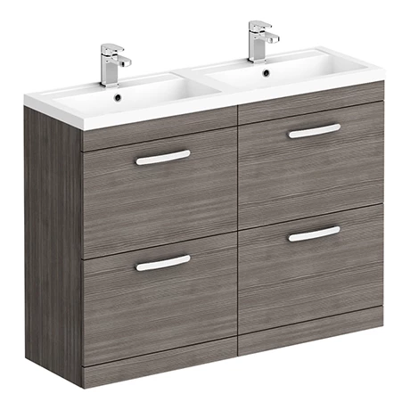 Brooklyn 1205mm Grey Avola Double Basin 4 Drawer Vanity Unit