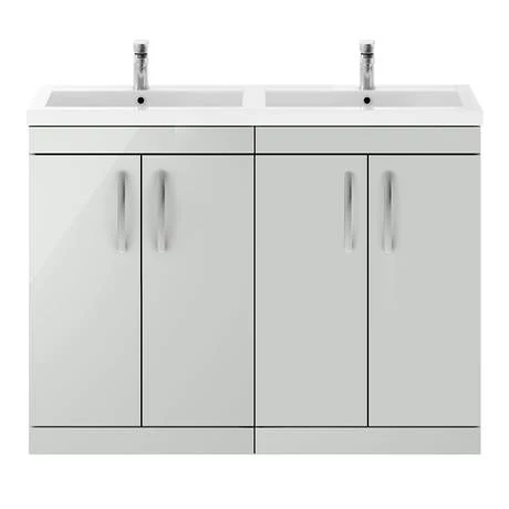 The 1205mm wide Brooklyn double basin vanity unit, bring a clean modern look to your bathroom. Combines up to date looks with practical storage, perfect for couples or families.