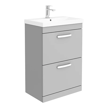 (1) Floor Standing 2 Drawer Vanity Unit – Grey Mist (600 x 383mm)