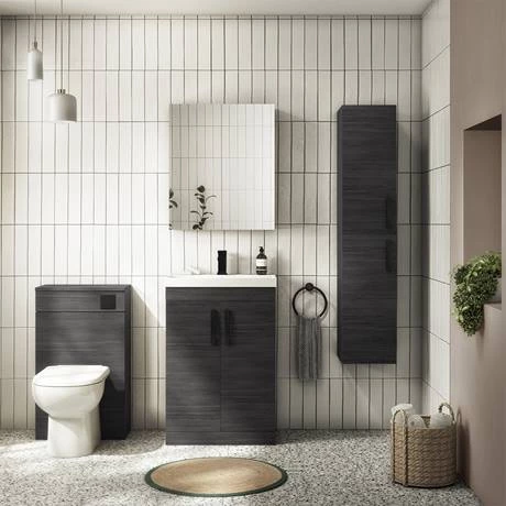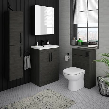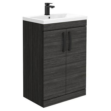 Brooklyn Black Vanity Unit – 600mm Wide with Matt Black Handles