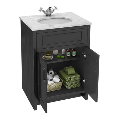 Chatsworth Graphite 610mm Vanity with White Marble Basin Top