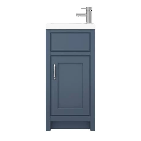 The Chatsworth Traditional Small Vanity Unit makes a charming and practical addition to a classically styled bathroom. At just 400mm wide, this basin vanity unit is a convenient space saver for cloakrooms and en suites. A durable white poly marble sink sits atop a storage cabinet that’s finished in an elegant satin blue. Behind a soft closing door, you’ll find an internal shelf for keeping your toiletries and accessories. Why not complete the colour scheme by installing the Chatsworth Blue Toilet Seat alongside this freestanding vanity unit?