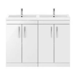 Burlington 130 4-Door Vanity Unit & Minerva Worktop with Double Basin – Classic Grey