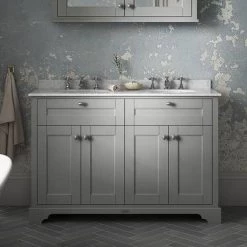 Old London 1200mm Cabinet & Double Bowl Grey Marble Top – Storm Grey