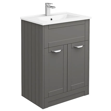 (1) Grey Shaker-Style 600 Floorstanding Vanity Unit