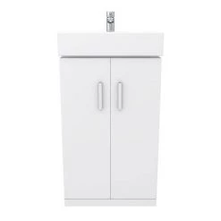 At 450mm wide and 310mm deep, the Nova Cloakroom Vanity Unit is remarkably compact – making it an ideal choice for smaller bathrooms. It has in-built storage with two soft-closing cupboard doors and internal shelves to keep your toiletries organised. With its white gloss finish, chrome handles and high-quality ceramic basin, this bathroom sink unit is packed with minimalist modern style. For use with wall mounted basin mixers.