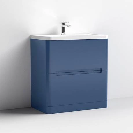 (1) Elbe Satin Blue 800mm Floor Standing 2-Drawer Vanity Unit – PAR335