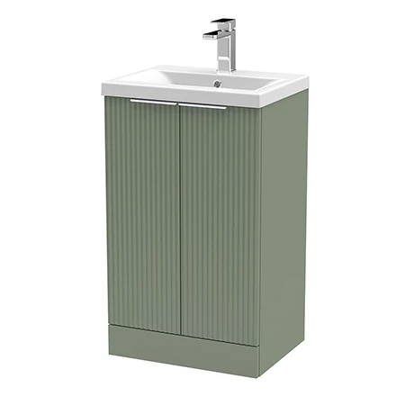Create an Art Deco inspired bathroom with the Venice Fluted 500mm Green 2 Door Floor Standing Vanity Unit. The units striking fluted front adds a modern twist. It has ample storage with its 2 large soft-closing doors to keep your toiletries organised. The mid-edged ceramic basin slots perfectly on top and all pipework is neatly concealed within the unit. Manufactured from quality materials, this vanity unit comes fully assembled and is finished in green satin.