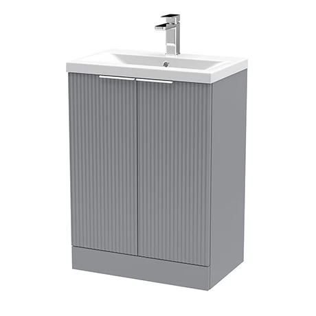Create an Art Deco inspired bathroom with the Venice Fluted 600mm Grey 2 Door Floor Standing Vanity Unit. The units striking fluted front adds a modern twist. It has ample storage with its 2 large soft-closing doors to keep your toiletries organised. The mid-edged ceramic basin slots perfectly on top and all pipework is neatly concealed within the unit. Manufactured from quality materials, this vanity unit comes fully assembled and is finished in satin Grey.